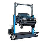 The Portable Car Hoist Model C is a steady two-posts lifting arms with electric motor and hydraulic cylinders without the need of any concerts. Setup takes just a few minutes, and they are available in electric-powered for stationary use or battery-powered for mobile operations. Top Brace Automatic Up & Down Movement.