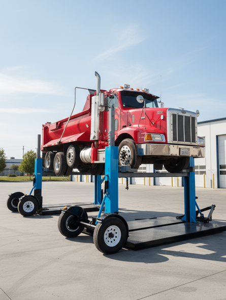 Fourth, heavy commercial vehicle maintenance is booming. Fleet operators managing delivery trucks, utility vehicles, and semi-trailers are actively looking for lifting solutions that don't require specialized shop facilities, so technicians can service vehicles at depots and yards without full shop infrastructure.